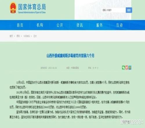 山西中宇俱乐部和威廉姆斯本人已经声明放弃B瓶检测和听证会。