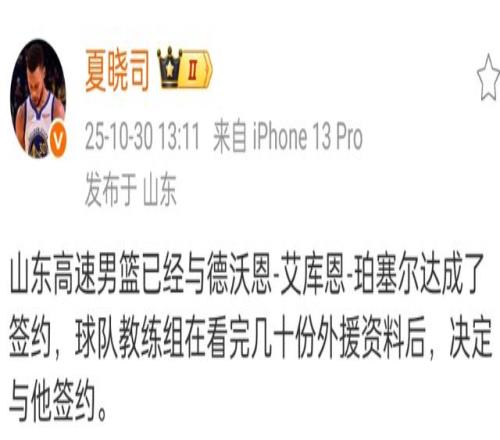 在观看了众多外援资料后,邱彪最终还是选择了珀塞尔,一方面他的报价山东男篮能够接受,另外邱彪也是希望寻找一个有欧洲打球经历的外援。