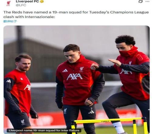 利物浦边路人手紧缺,让2008年出生的小将恩古莫哈成为唯一随队出征的正印边锋。 这位17岁新星曾在8月纽卡斯尔一役替补绝杀,但自11月负于诺丁汉森林后未再登场。客战国米,斯洛特敢不敢把宝押在恩古莫哈身上,这也是比赛值得关注的一个看点。