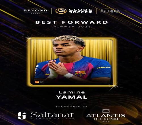 官方:亚马尔当选环球足球奖2025年最佳前锋